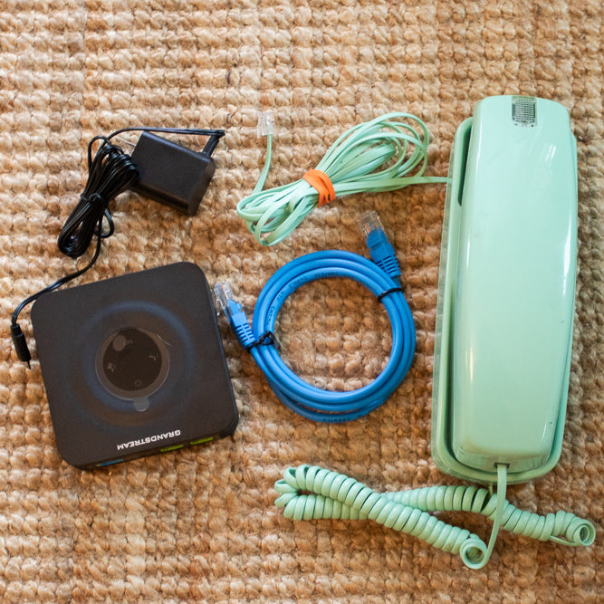 - Plug your vintage phone into the adapter.